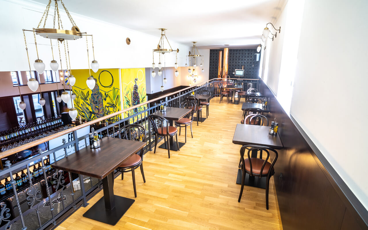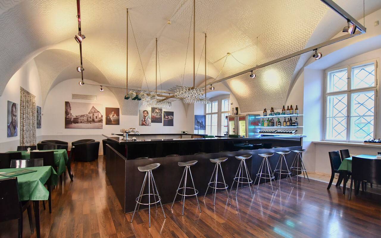 * Přední část 28 osob, prostor pod galerií 20 osob, pod schody 6 osob, barový pult 16 osob. Galerie je vyčleněna pro hotelové hosty.